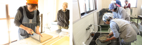 このそば作り体験は、公園内の体験田で種まきから始め、時間をかけて育てた“そば”を最後にはそば打ちまでおこなって味わうという、古代からのつくりかたに触れる体験イベントです。まず初日は、猛暑という条件でありながら、皆さん育ったそばを思い浮かべながら懸命に種まきをおこないました。その後、成長を見守りながらのそばの花見会、刈り取り、脱穀作業を経て、ついに予定通り12月4日に念願のそば打ちとなりました。自分たちが育てたそばを試食した時は本当に最高の味わいで、参加した皆さん全員が感慨深い貴重な体験となりました。